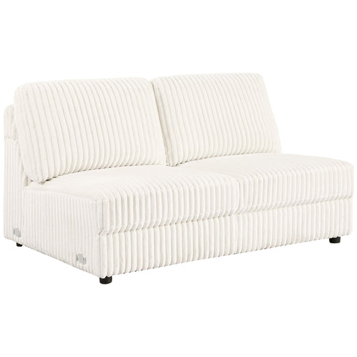 Coaster Z2 PremiumAdd versatile seating to your sectional with the armless loveseat, upholstered in ivory wide corduroy. This piece offers plush comfort and easily f...