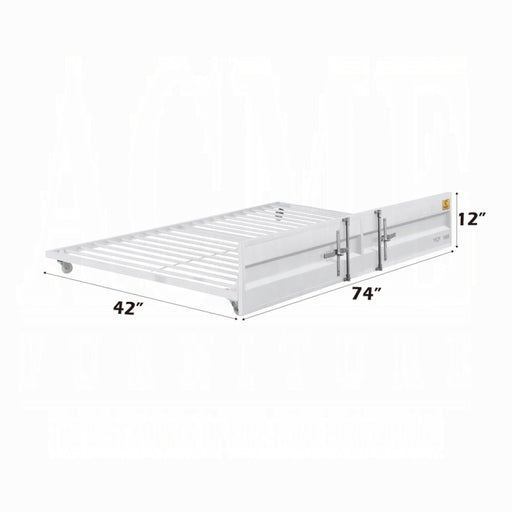ACME Cargo Desk & Hutch, White, 47" x 24" x 60"H, 105Lbs. The Cargo computer desk and hutch have a industrial look and ample space that makes it perfect for your dorm, bedroom, or home office. This computer desk constructed of durable iron metal in a crisp white painted finish. It has a top compartment as well as one storage base to offer plenty of space to keep your office accessories. Materials: Metal